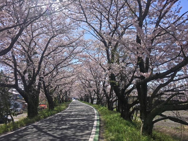 静岡県藤枝市を流れる瀬戸川沿いに続く桜並木は、まさに“桜のトンネル”。